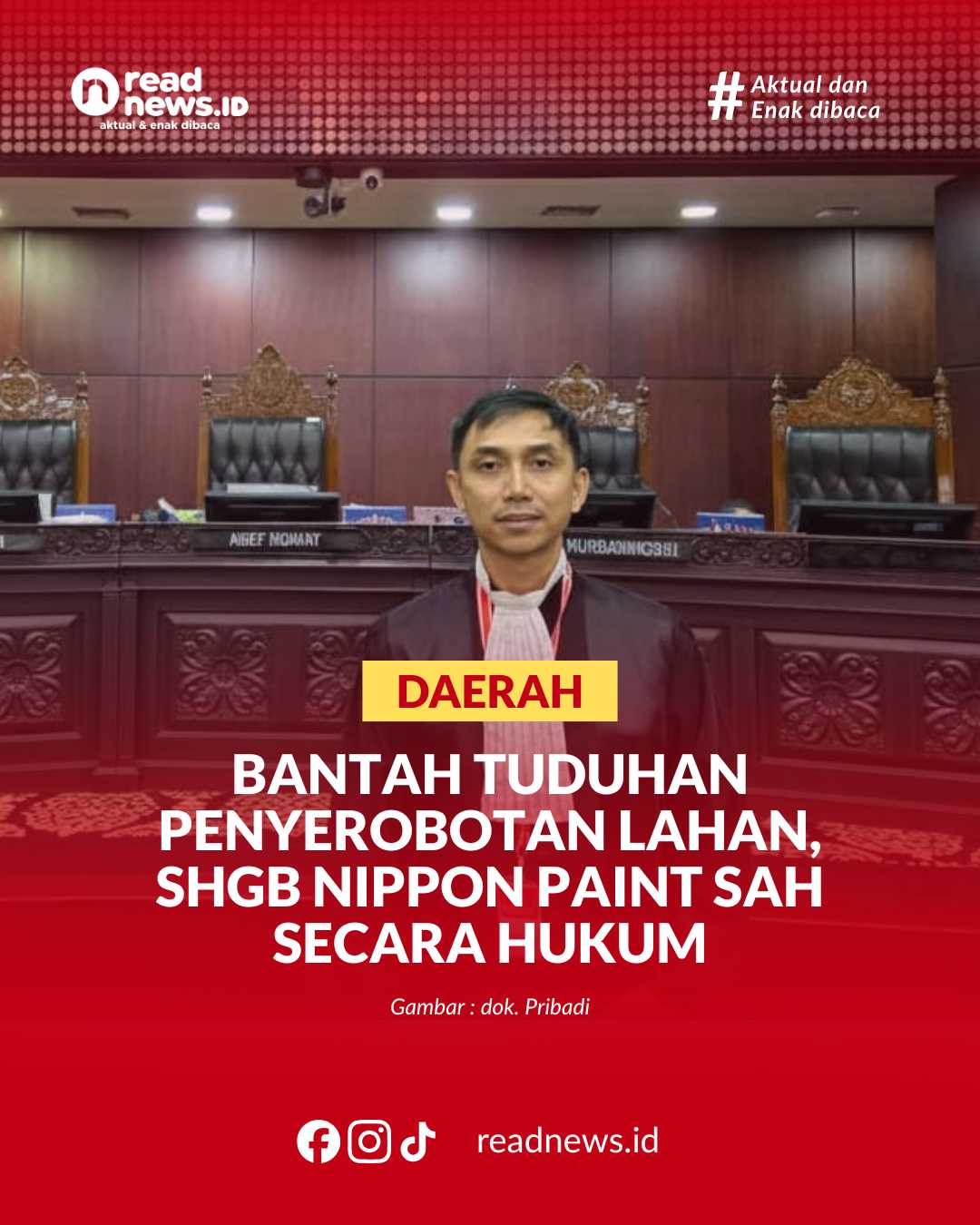 Kuasa hukum Nippon Paint, Julianer Aditia Warwan, menegaskan bahwa kliennya membeli lahan tersebut secara sah dan berlandaskan dokumen resmi yang diterbitkan lembaga berwenang.