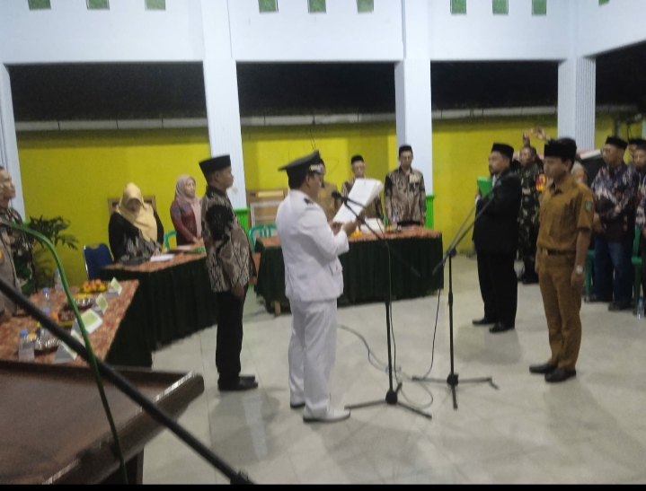 Acara diawali dengan pembacaan Surat Keputusan Kepala Desa tentang pengangkatan perangkat desa, dilanjutkan pengambilan sumpah jabatan dan penandatanganan berita acara sebagai bentuk pengesahan secara administratif.