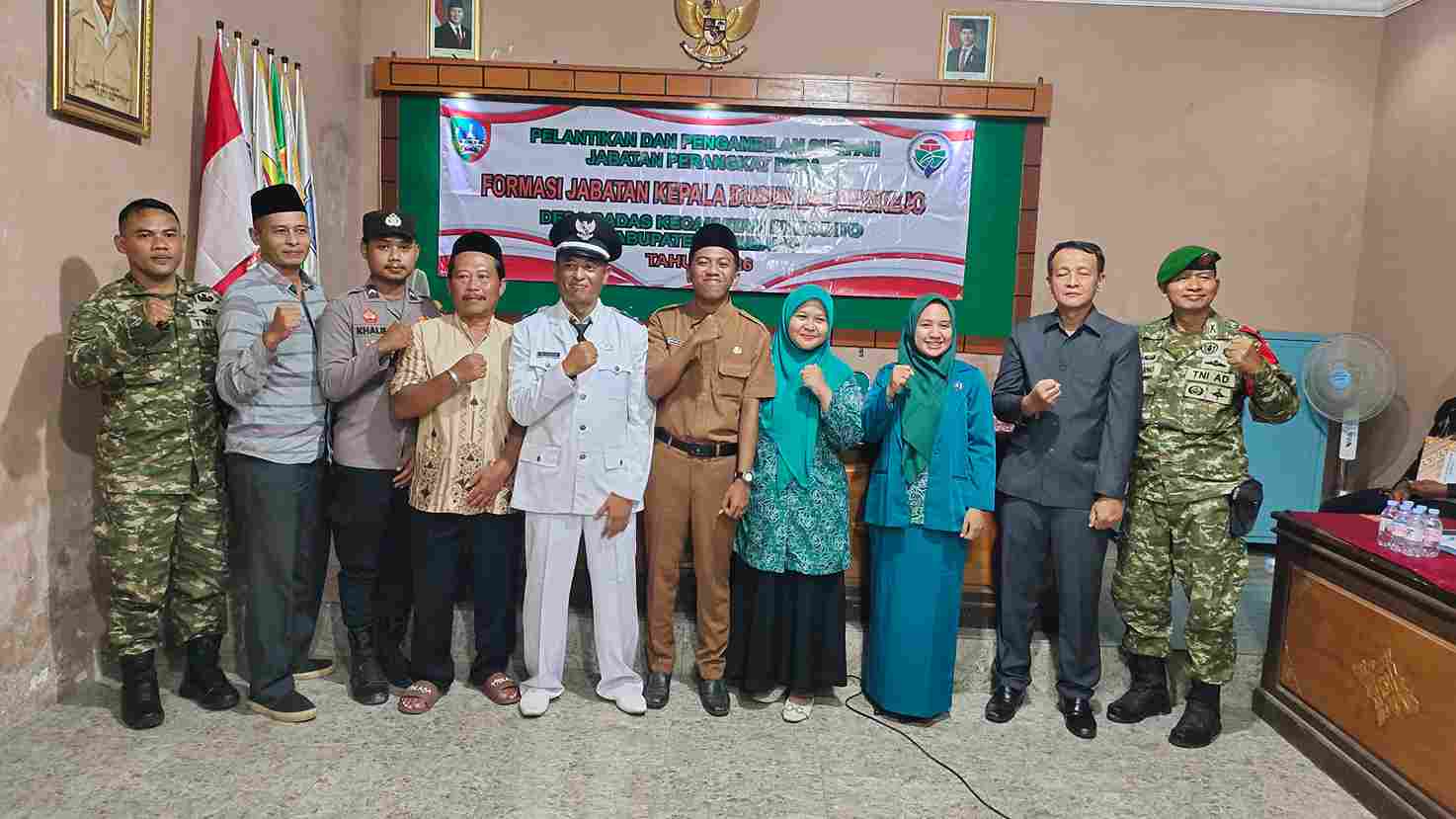 Pelantikan dihadiri unsur Forkopimcam, Badan Permusyawaratan Desa (BPD), perangkat desa, tokoh agama, tokoh masyarakat, serta seluruh ketua RT dan RW di wilayah setempat.