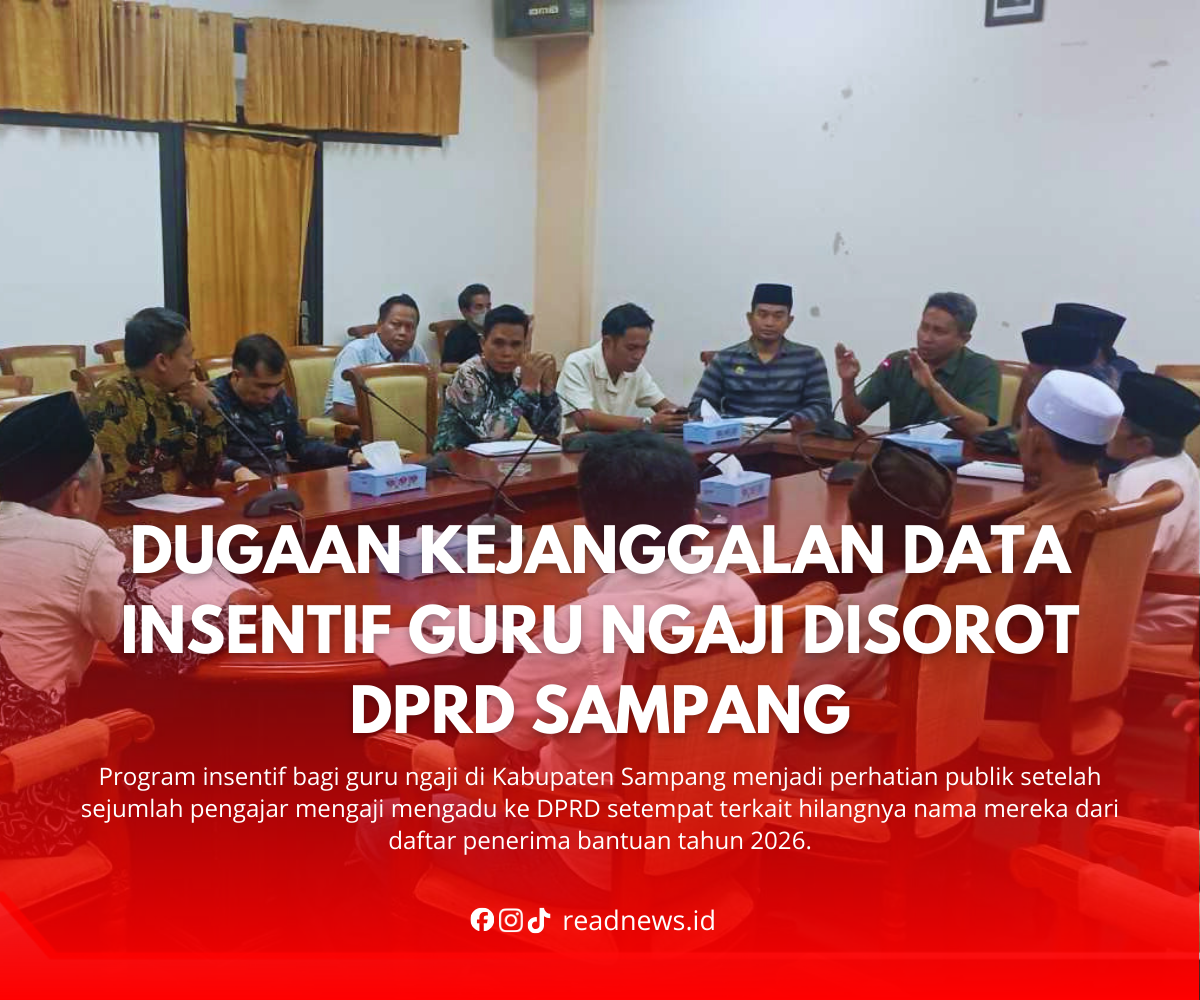 READNEWS.ID, SAMPANG – Program insentif bagi guru ngaji di Kabupaten Sampang menjadi perhatian publik setelah sejumlah pengajar mengaji mengadu ke DPRD setempat terkait hilangnya nama mereka dari daftar penerima bantuan tahun 2026. Aduan tersebut disampaikan dalam audiensi yang digelar di kantor DPRD Sampang pada Kamis (5/3/2026).