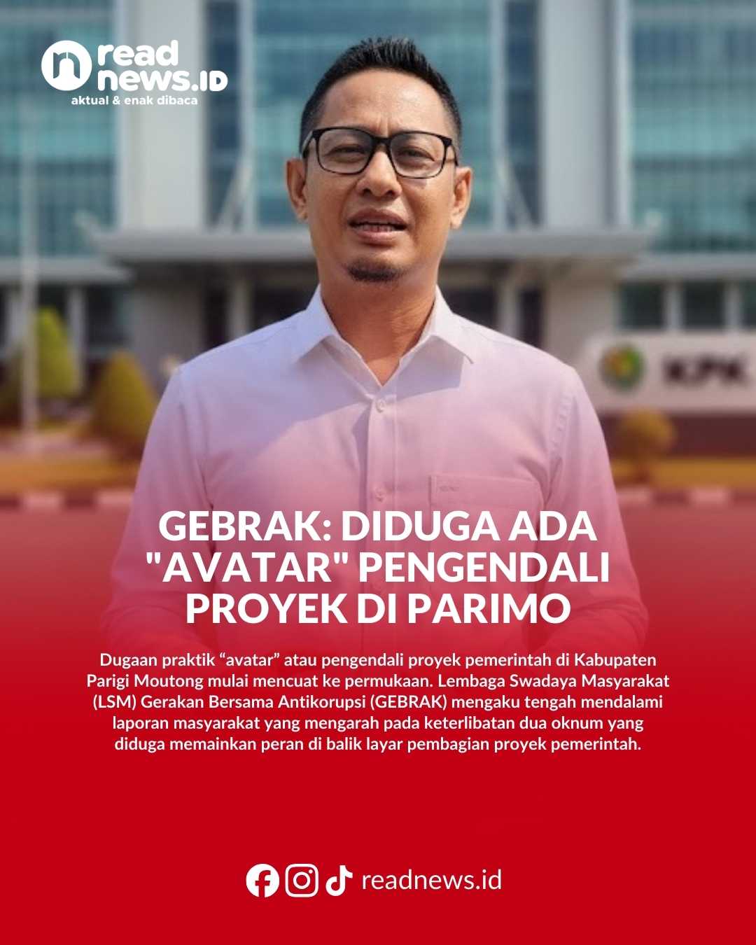 READNEWS.ID, PALU – Dugaan praktik “avatar” atau pengendali proyek pemerintah di Kabupaten Parigi Moutong mulai mencuat ke permukaan. Lembaga Swadaya Masyarakat (LSM) Gerakan Bersama Antikorupsi (GEBRAK) mengaku tengah mendalami laporan masyarakat yang mengarah pada keterlibatan dua oknum yang diduga memainkan peran di balik layar pembagian proyek pemerintah.
