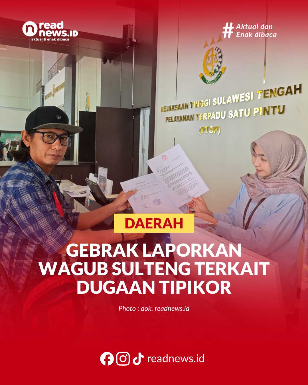 READNEWS.ID, PALU – Lembaga Swadaya Masyarakat (LSM) Gerakan Bersama Rakyat Antikorupsi (GEBRAK) kembali menyambangi Kejaksaan Tinggi Sulawesi Tengah (Kejati Sulteng) pada Jum’at 28 November 2025 guna melaporkan dugaan Tindak Pidana Korupsi (Tipikor) yang melibatkan Wakil Gubernur Sulteng dr. Reny A Lamadjido, dan sejumlah pejabat RSUD Undata lainnya.
