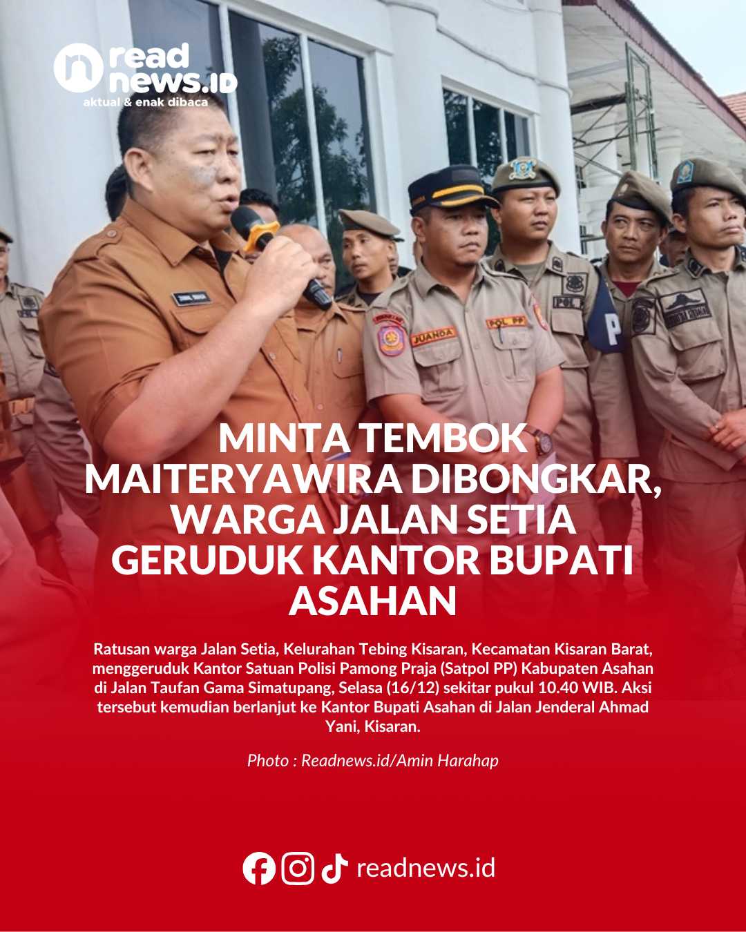 Kedatangan massa menuntut Satpol PP Asahan segera membongkar tembok milik Yayasan Maiteryawira yang dinilai menutup akses Jalan Setia, jalan yang selama puluhan tahun digunakan warga sebagai jalur utama aktivitas sehari-hari.