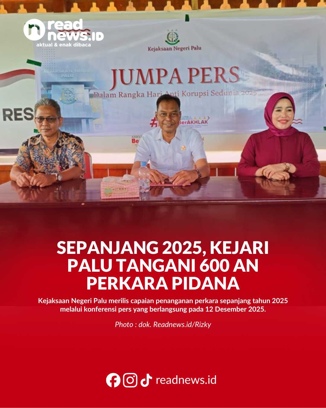 READNEWS.ID, PALU – Kejaksaan Negeri Palu merilis capaian penanganan perkara sepanjang tahun 2025 melalui konferensi pers yang berlangsung pada 12 Desember 2025.