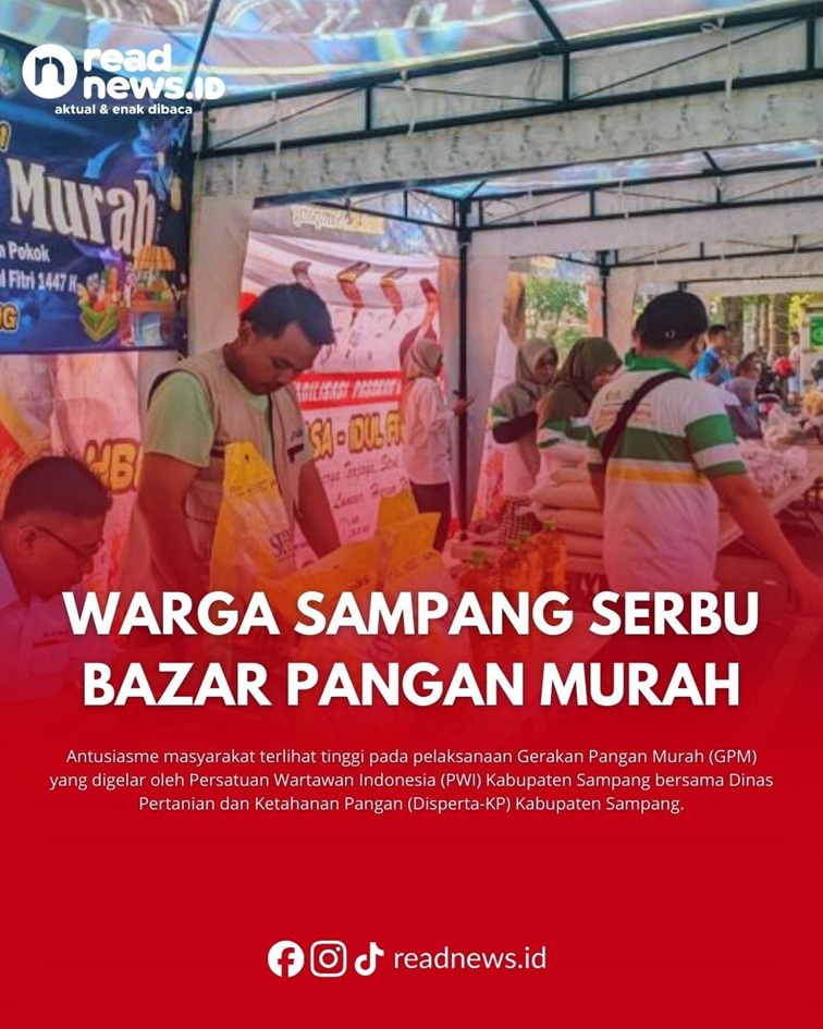 READNEWS.ID, SAMPANG – Antusiasme masyarakat terlihat tinggi pada pelaksanaan Gerakan Pangan Murah (GPM) yang digelar oleh Persatuan Wartawan Indonesia (PWI) Kabupaten Sampang bersama Dinas Pertanian dan Ketahanan Pangan (Disperta-KP) Kabupaten Sampang. Kegiatan yang berlangsung di depan Pendopo Trunojoyo, Senin (9/3/2026), langsung dipadati warga sejak pagi hari.